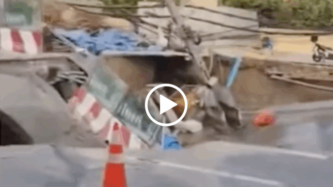 Un tramo de carretera frente a El Hospital Vajira en Samsen Road, Subdistrito del Hospital Vajira, Distrito Dusit, colapsó repentinamente temprano esta mañana, lo que provocó una respuesta inmediata de los servicios de emergencia.