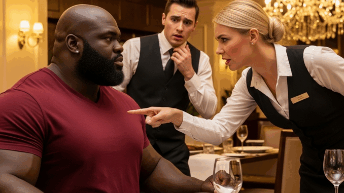 Shaquille O’Neal entró en un lujoso restaurante ubicado en el corazón de la ciudad, vestido con ropa informal y algunas arrugas, con aspecto de un día cualquiera. Eligió una mesa pequeña y discreta, intentando no llamar la atención, mientras la luz brillante de las lámparas de araña de cristal iluminaba el espacio a su alrededor. Sin embargo, antes de que pudiera pedir, una camarera se le acercó con una mirada despectiva y aire de arrogancia.