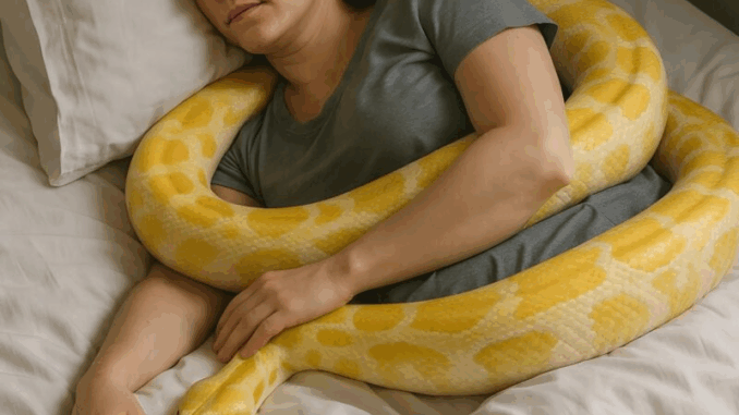 Los primeros signos preocupantes aparecieron casi desapercibidos. Safran dejó de comer. Por la noche, salía del terrario arrastrándose y se estiraba junto al cuerpo de la mujer: la cabeza a la altura del hombro y la cola a la altura de los tobillos. A veces se enrollaba ligeramente alrededor de su cintura y permanecía inmóvil, como si estuviera contando las costillas.