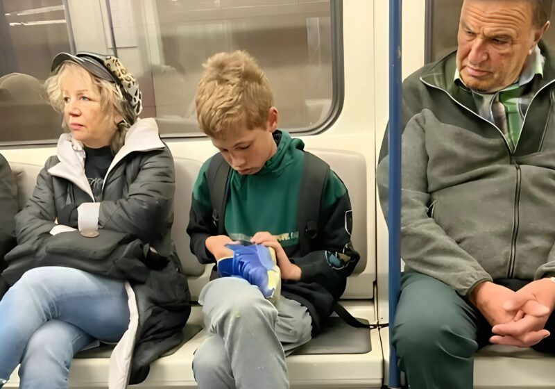 En la siguiente parada, las puertas se abrieron y un niño de unos diez años subió al coche. Parecía que se había escapado de clase: pelo revuelto, pantalones cortos arrugados y una zapatilla desgastada en la mano. Pero lo más importante: iba descalzo. En un pie, llevaba un calcetín fino de rayas. Se sentó en un asiento vacío entre dos pasajeros e intentó no llamar la atención.