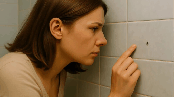 Unos días después, mientras limpiaba el baño, la mujer notó un pequeño agujero en la pared. Al principio, pensó que era solo una grieta o un desconchón. Pero al observar más de cerca, se dio cuenta de que el agujero estaba demasiado perfecto, como si se hubiera hecho con una herramienta especial. Y lo más importante: el agujero definitivamente no estaba allí antes.