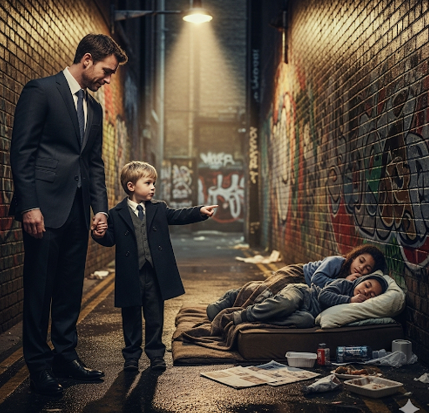 “Papá, esos dos niños durmiendo en la basura se parecen mucho a mí”, dijo Pedro, señalando a los pequeños que dormían acurrucados en un colchón viejo en la acera. Eduardo Fernández se detuvo y siguió con la mirada el dedo de su hijo de 5 años. Dos niños, aparentemente de la misma edad, dormían acurrucados entre bolsas de basura con ropa sucia y rota, con los pies descalzos y heridos.