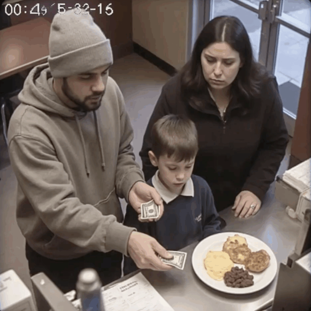 Momentos después, entraron una madre y su hijo pequeño. Se acercaron al mostrador con ojos esperanzados y cinco dólares arrugados en la mano, pidiendo el desayuno especial. “No es suficiente”, dijo la cajera con sequedad, despidiéndolos con un gesto de desdén. El rostro del niño se ensombreció y su madre se encorvó al darse la vuelta para marcharse.