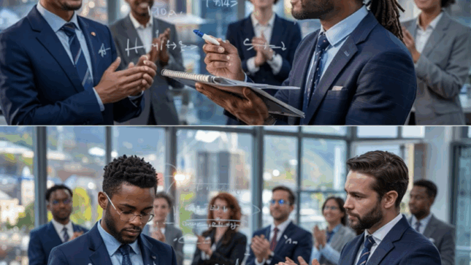 En ese momento, una voz rompió la tensión. “Puedo corregirlo”. Todas las miradas se dirigieron a la puerta, donde se encontraba un hombre de unos 40 años. Williams, con su abrigo andrajoso y sus zapatos llenos de polvo, parecía completamente fuera de lugar en el ambiente corporativo. Pero su presencia llamaba la atención. Johnson, reconociendo la urgencia de la situación, detuvo a los guardias de seguridad que estaban listos para escoltar a Williams.