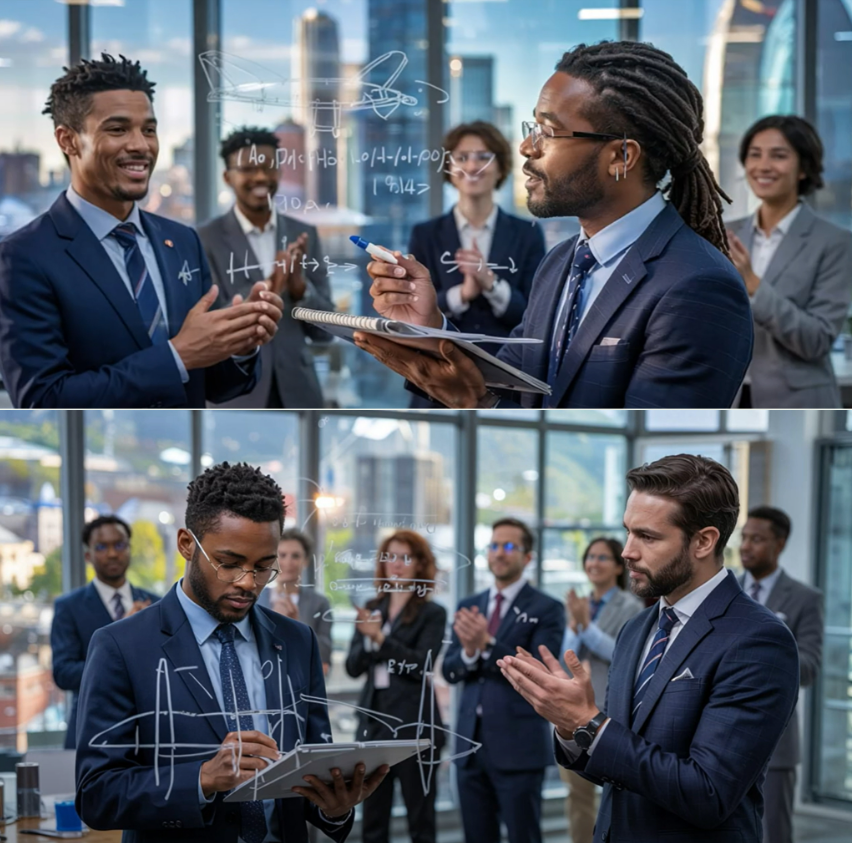 Mientras Williams se miraba en el espejo por primera vez en mucho tiempo, apenas reconoció al hombre que le devolvía la mirada. Ya no era el mendigo sin hogar; volvía a ser ingeniero, listo para recuperar su vida. Al día siguiente, regresó a Aerospace, no como un extraño, sino como un líder, presentado al equipo con admiración y respeto.