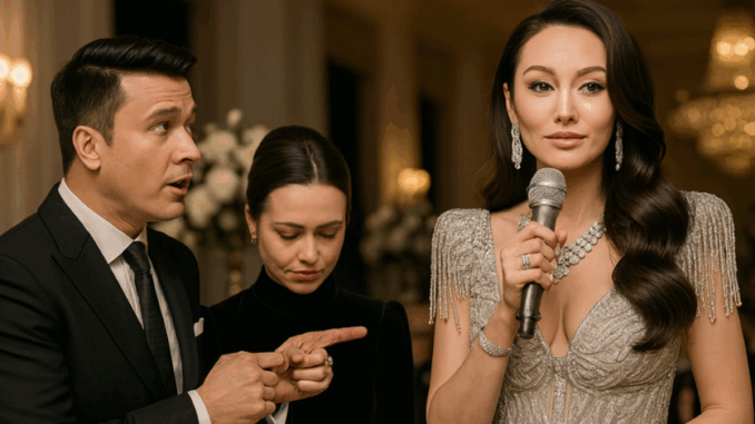 En cuanto terminó de hablar, las luces del pasillo se apagaron de repente y  la luz de seguimiento iluminó directamente el rostro de la “amante”.