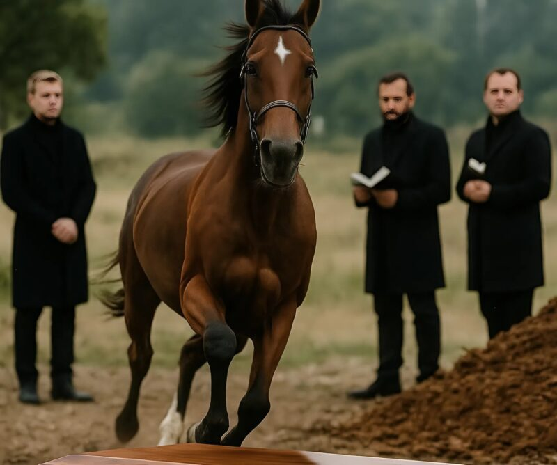 Durante el funeral, un caballo emergió repentinamente del bosque y corrió directo hacia el ataúd: los asistentes quedaron en shock cuando descubrieron por qué el animal hizo esto.