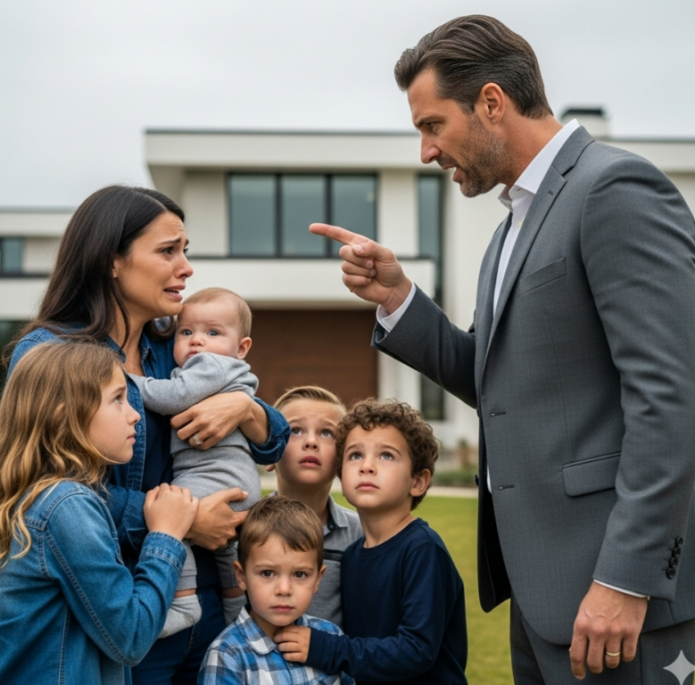 Magdalena permaneció en silencio, con el corazón encogido, mientras cinco pares de ojitos la observaban con temor. «Ernesto, por favor, son tus hijos», susurró, pero él ya no la escuchaba. Solo los veía como una molestia y a ella como una carga muerta. Con una copa de vino en la mano y el rostro endurecido por el desprecio, señaló hacia la puerta principal.