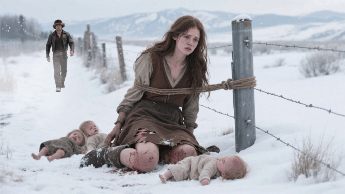 Wayat la acomodó con cuidado en el suelo y observó a los bebés. La nieve empezaba a cubrir la manta. Uno de ellos tosió. Se arrodilló, enrolló mejor la manta, ajustó los bordes y luego miró a la mujer, cuya respiración era superficial como la de un ratón. “Estás conmigo”, dijo en voz baja, firme como una promesa. Ella no respondió, pero una lágrima rodó por su mejilla helada.
