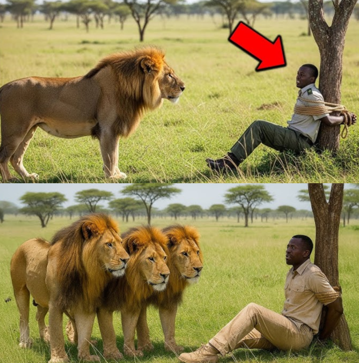 León encuentra a guardabosques atado en la sabana — Lo que pasó después sorprendió a todos