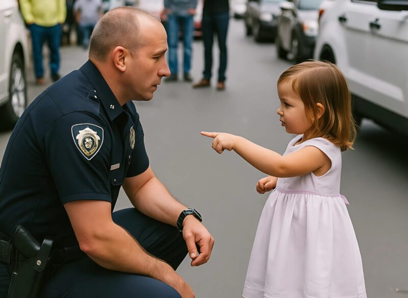 Nadie comprendió de inmediato de dónde venía. Una niña pequeña, de unos seis años, estaba de pie en la acera con un elegante vestido blanco, como si acabara de salir de una fiesta.