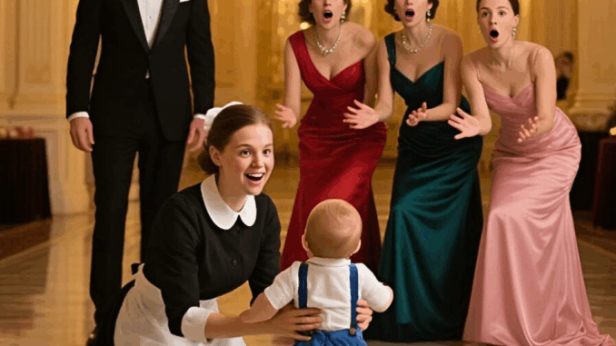 Con una determinación vacilante, pasó junto a sus brazos enjoyados y elegantes vestidos, dirigiéndose hacia la esquina donde Emily, la joven doncella, estaba arrodillada en silencio, recogiendo juguetes. Se quedó paralizada, con los ojos muy abiertos, cuando Ethan cayó en sus brazos, aferrándose a su uniforme con total confianza.