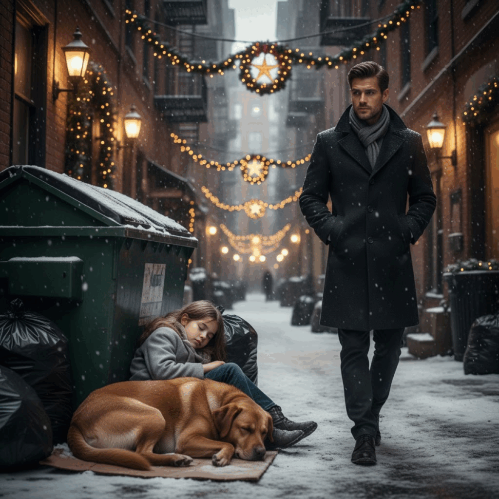 Por favor, no se lleven a mi perro. Es todo lo que tengo. No estoy aquí para llevármelo. Un padre soltero, director ejecutivo de una empresa, encontró a una niña pequeña y a su perro durmiendo sobre basura en Nochebuena. La verdad lo dejó atónito. Aquella Nochebuena nevó intensamente, cubriendo las frías calles de Nueva York con un manto blanco y silencioso. Pero en el callejón detrás de un restaurante de lujo, junto a montones de cajas rotas y basura, una niña dormía acurrucada en el suelo helado, abrazando a su pecho a un perro marrón que temblaba.