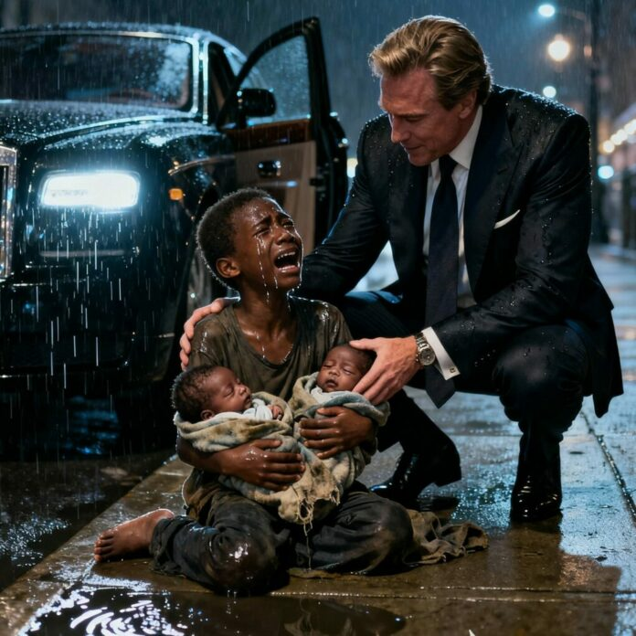 Adrian sintió algo que no había sentido en años: un nudo en el pecho. Bajó la ventanilla y el rugido de la lluvia llenó el coche. En ese instante, lo vio con claridad: los «bultos» en brazos del niño eran dos bebés , con sus caritas rojas de tanto llorar y sus cuerpecitos temblando de frío.