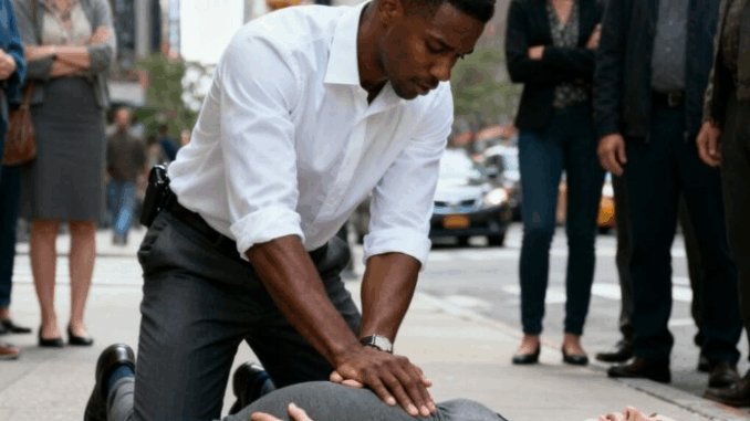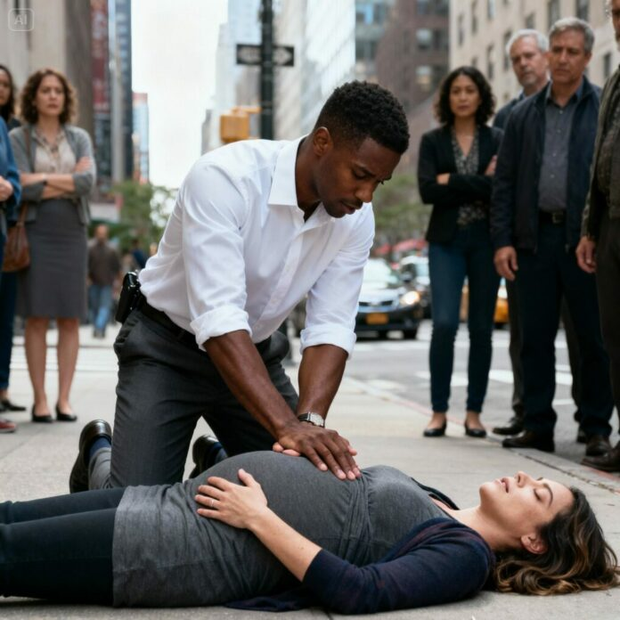 Su respiración se estabilizó lo suficiente. Marcus la giró de lado para aliviar la presión y comprobó con cuidado si había sangrado. Llamó al 911 mientras seguía tranquilizándola. La gente se reunió, pero nadie se acercó. Solo Marcus permaneció allí, con las manos firmes, la voz tranquila y el corazón acelerado, pero controlado.