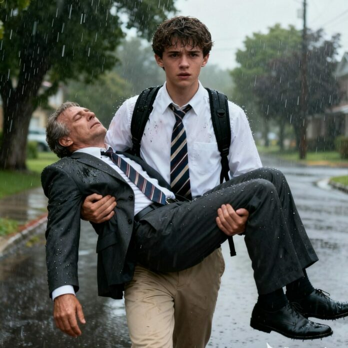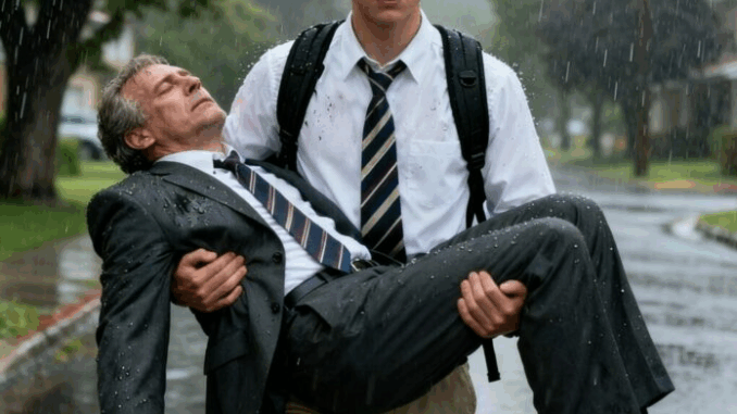 Al girar hacia la avenida principal, le llamó la atención un movimiento repentino: un hombre con traje gris oscuro se desplomaba cerca de la parada de autobús. Al principio, Ethan pensó que se había tropezado, pero al acercarse, sintió un nudo en el estómago. El hombre no se movía. Su maletín yacía abierto a su lado, con los papeles ondeando al viento.