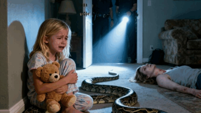 Entonces vieron la pitón: su cuerpo grueso y musculoso se extendía por el suelo del pasillo. Travis Cole estaba medio apoyado contra la pared, con el brazo gravemente mordido. Tenía el pulso débil, pero seguía con vida. Emma estaba sentada en el suelo cerca, abrazándose a sí misma con fuerza, con lágrimas que le recorrían las mejillas.