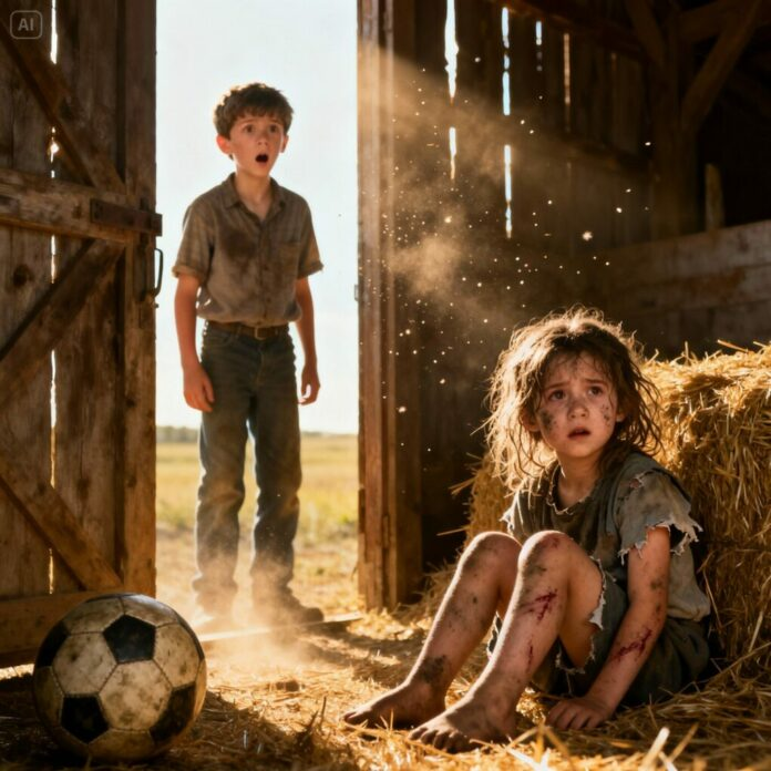 Esa tarde, Ethan contó sus patadas en voz alta —«48…49…»— antes de que su pie golpeara la pelota con demasiada fuerza. Salió disparada por encima del patio y se estrelló contra la ventana del viejo granero . Ethan se quedó paralizado. Ese granero estaba terminantemente prohibido . Frank lo había cerrado con llave hacía meses, alegando que allí guardaba productos químicos y herramientas peligrosas. Ethan nunca se había atrevido a desobedecer… hasta ahora.