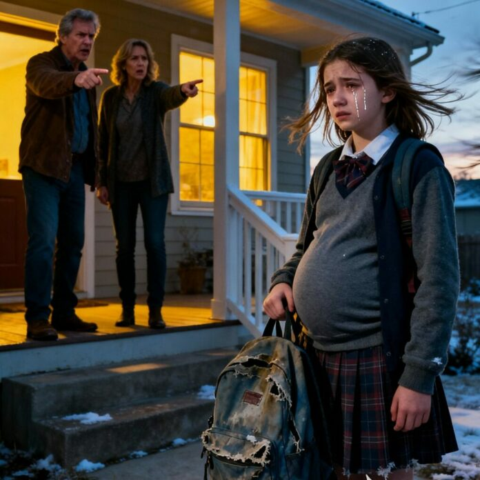 A los catorce años, Emily Parker jamás imaginó que un solo instante pudiera destrozar su mundo. Aquella tarde de noviembre en Dayton, Ohio, estaba sentada en el porche de su casa, con su pequeña bolsa de lona a sus pies y el corazón latiéndole con fuerza. El viento azotaba el tranquilo vecindario, trayendo consigo el olor a hojas quemadas y a humo de escape lejano. Dentro de la casa, su madre, Karen, sostenía la prueba de embarazo que Emily había intentado esconder; la tira blanca temblaba en su mano como un veredicto.