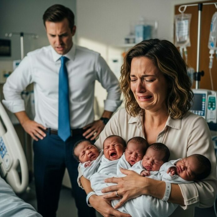 Dos semanas después, Emily recibió el alta con cinco bebés y sin nadie esperándola afuera. Los llevó sola a través de las puertas del hospital hacia un mundo frío y lleno de prejuicios.