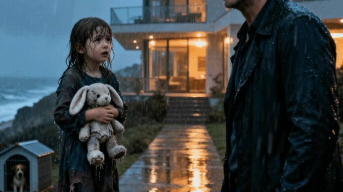 Ethan se quedó paralizado. Al principio, pensó que lo había imaginado. Luego se giró y la vio. Una niña pequeña, empapada y descalza, mirándolo fijamente a través de la tormenta.