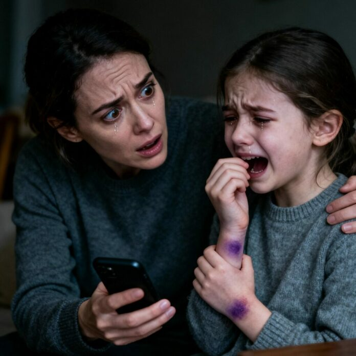 Emily se quedó paralizada a mitad del pasillo. Al girarse, a Laura se le revolvió el estómago. La manga de la sudadera de Emily se había deslizado lo suficiente como para dejar al descubierto varios moretones oscuros en su brazo: marcas feas y desiguales que ningún accidente podía explicar.