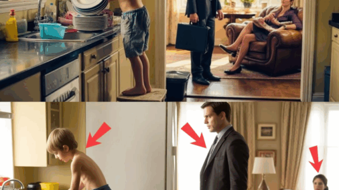 Eran las 4 de la tarde de un jueves. La puerta principal estaba abierta, y lo primero que oyó fue el sonido del agua corriendo y sollozos ahogados. Siguió el sonido hasta la cocina, y lo que vio le paralizó el corazón. Su hijo de 7 años, Daniel, estaba de pie frente al fregadero, lavando una montaña de platos sucios.