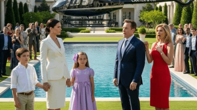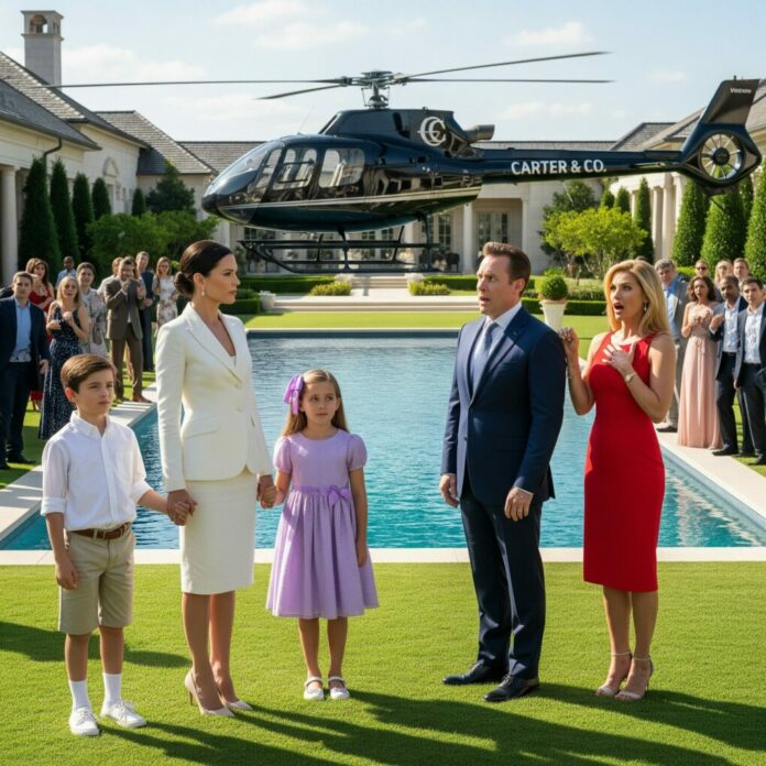 Mientras el helicóptero descendía cerca de la finca Whitaker, donde Michael y Rachel ofrecían un suntuoso brunch junto a la piscina, el rugido de las aspas silenció las conversaciones. Los invitados se protegieron los ojos del viento, con la curiosidad encendida en sus murmullos.
