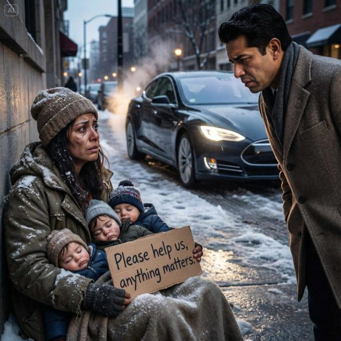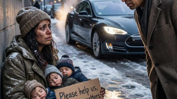 “Un millonario vio a su exnovia mendigando en la calle con tres hijos idénticos a él. Lo que sucedió después te romperá el corazón”.