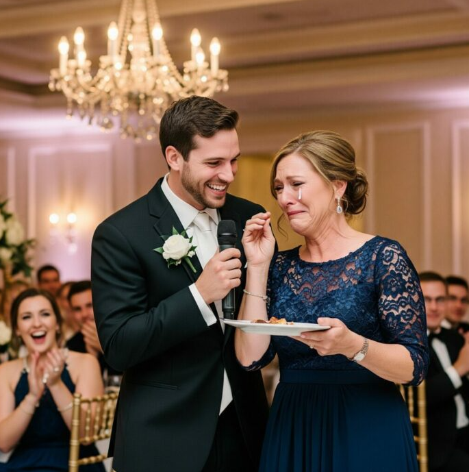 Antes de que pudiera comentar, Michael vio su plato y, en lugar de disculparse, sonrió con suficiencia. “Mamá está acostumbrada a comer lo que la vida le pone”, dijo en voz alta, señalando a Emma. La risa educada de Emma no logró ocultar su incomodidad. Los invitados intercambiaron miradas inseguras; algunos rieron con torpeza, otros se quedaron paralizados. Michael no se detuvo. “Es una experta con las sobras”, continuó. “Deberías haber visto las comidas que preparaba cuando yo era niño: nada sofisticado, pero lleno de amor”.