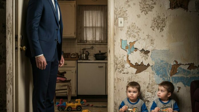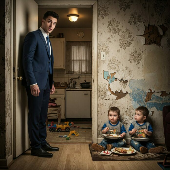La noche siguiente, decidido a confrontarla personalmente, Stephen siguió a Olivia hasta su pequeño apartamento en uno de los barrios más pobres de Chicago. El papel pintado descascarillado del pasillo, la luz tenue, los muebles desgastados… aquello distaba mucho del elegante restaurante. Al llegar a la cocina, se quedó paralizado. Dos niños pequeños estaban sentados, felices, comiendo las mismas sobras que había visto en cámara. Su ira se desvaneció, reemplazada por la conmoción.