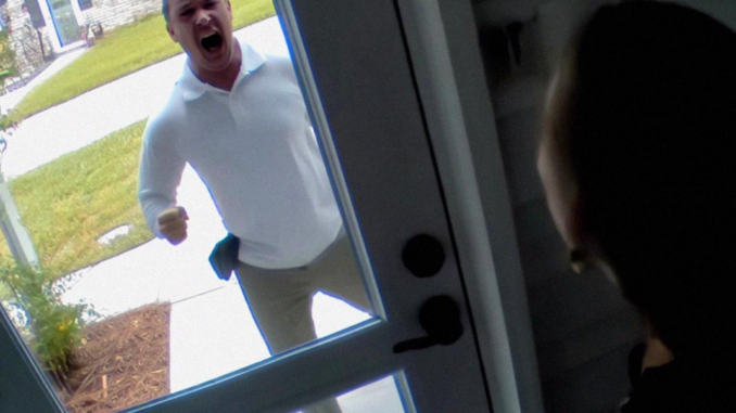 Un hombre afuera de la casa de su vecino | Fuente: Midjourney