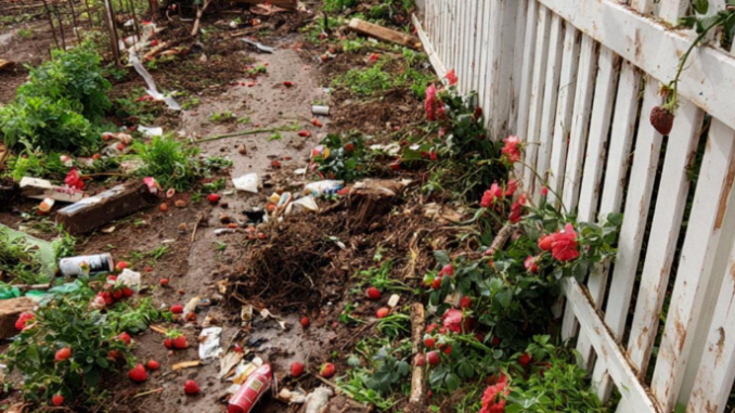 El jardín. Todo lo que plantamos. Está todo destruido. Arrancado… destrozado. Hay basura por todas partes. Es simplemente…