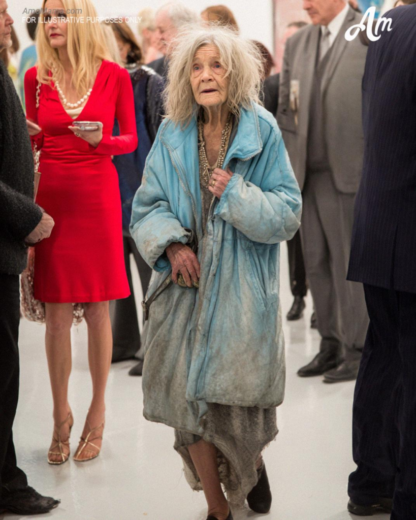 Era una mujer mayor, de unos sesenta y tantos años, con el aspecto de alguien olvidado por el mundo. Estaba de pie bajo el toldo, intentando no temblar.
