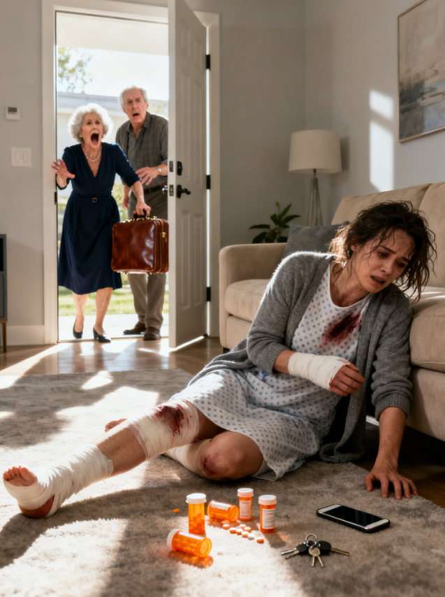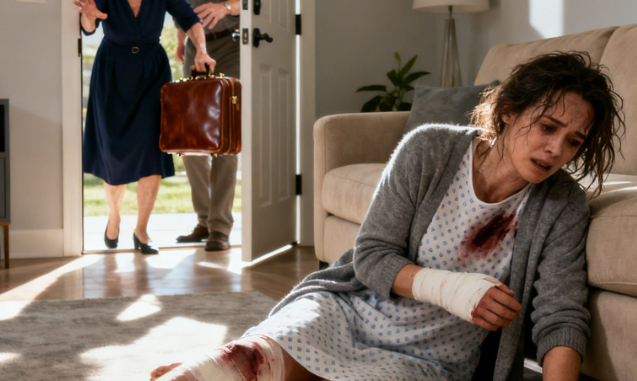 Mi madre me obligó a salir del hospital para “ahorrar dinero”. Luego se tomó unas vacaciones de lujo con mi indemnización y cuando llegó a casa, un extraño me abrió la puerta